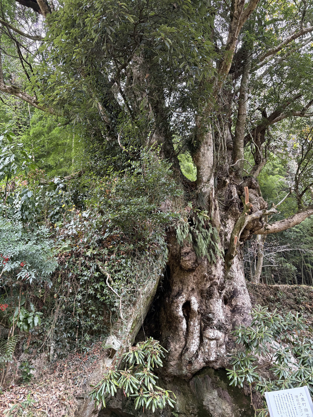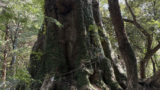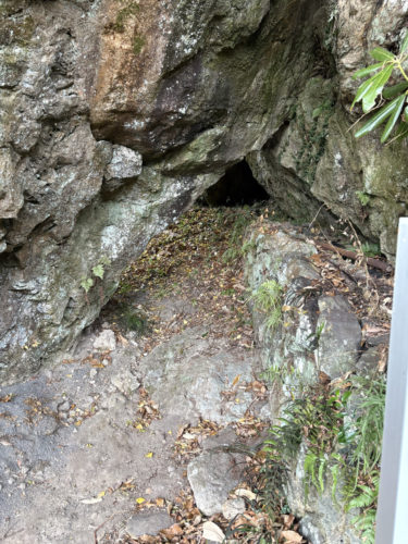 カゴノキの根が張る安山岩がトンネル状になっており、