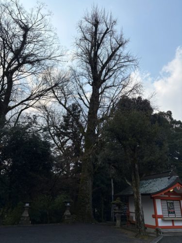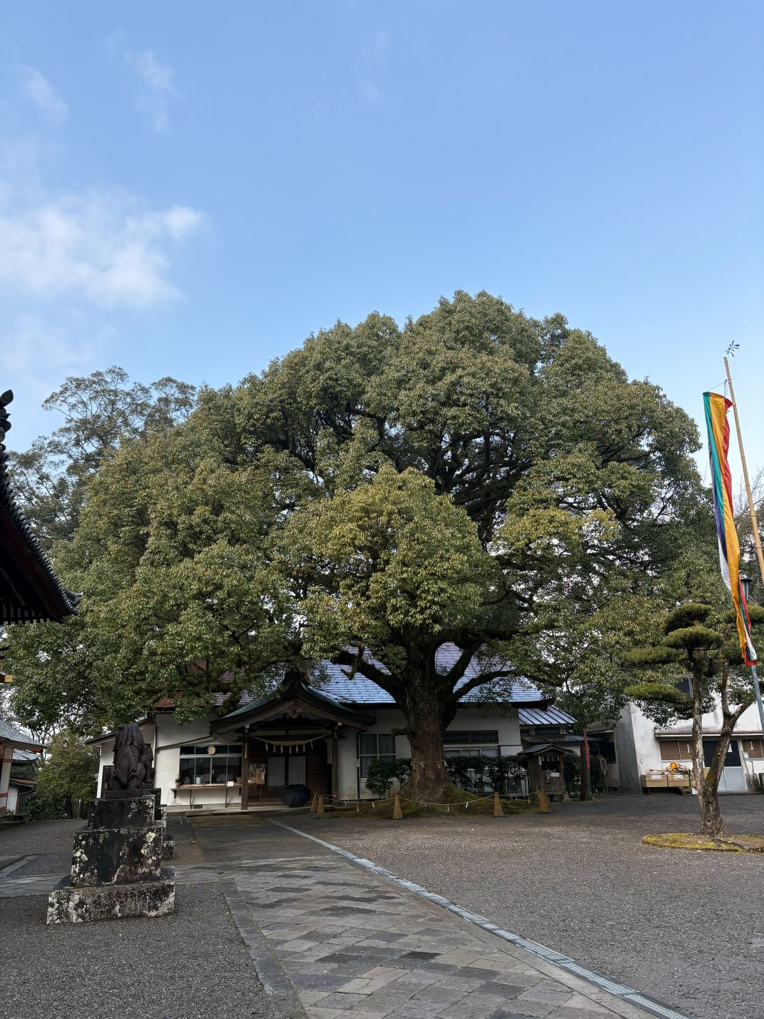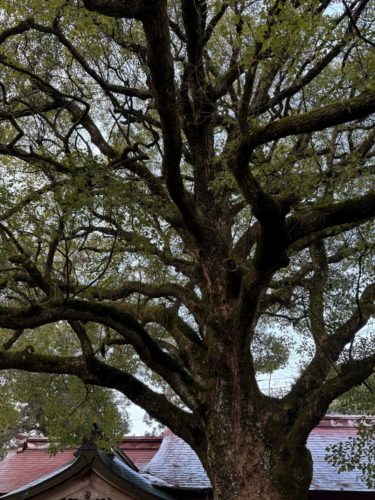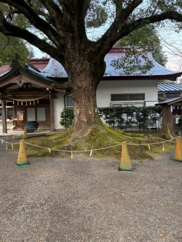 社の左側にクスノキは鎮座する。